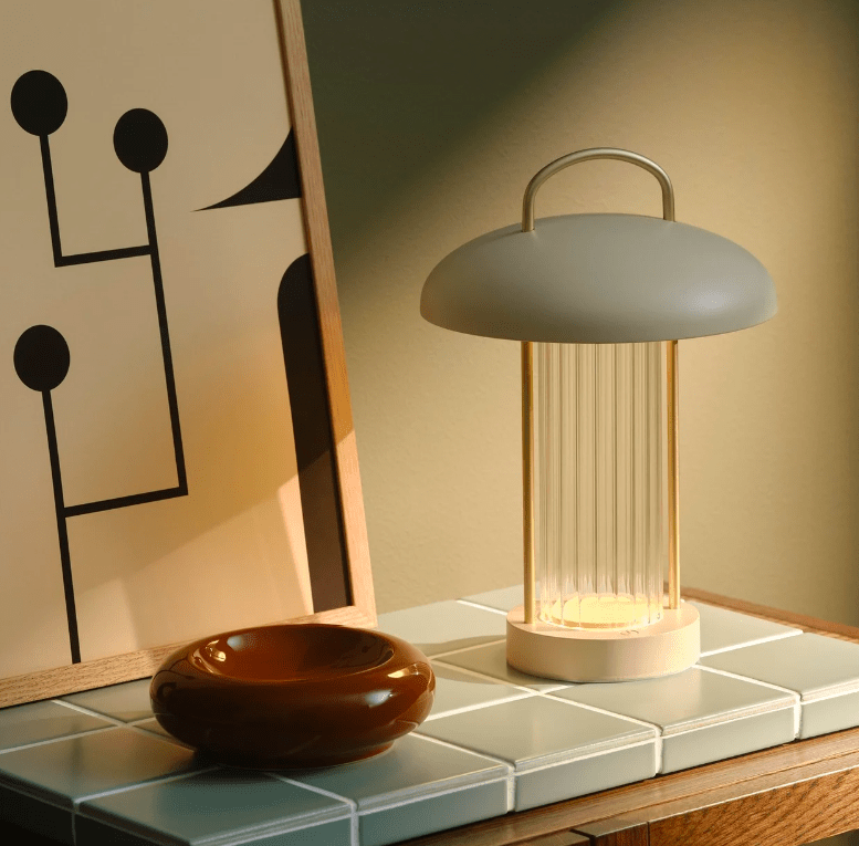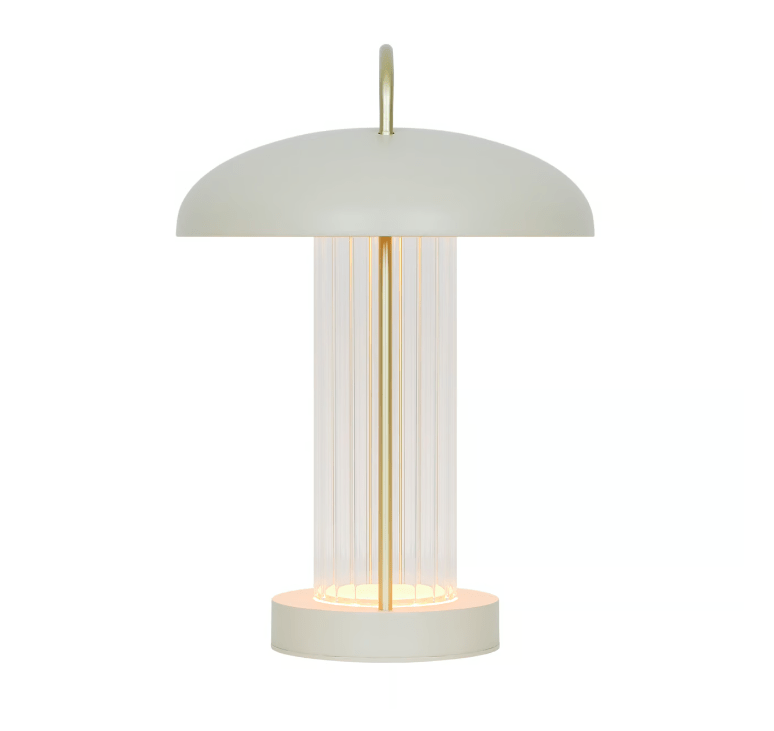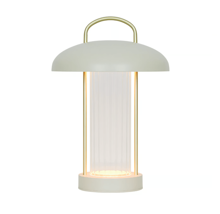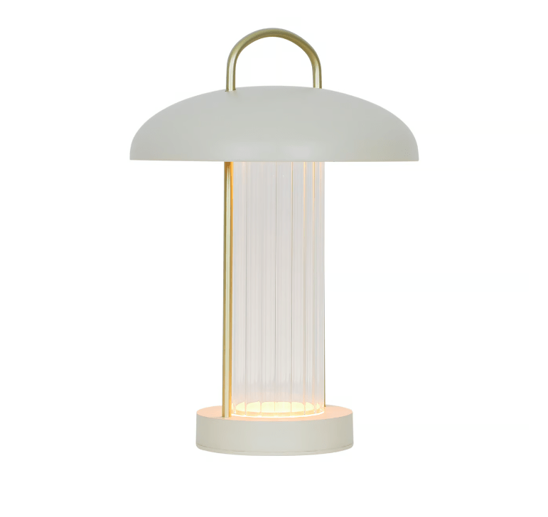Beżowa lampka stołowa LED Mirano, zasilana bateriami i ładowana przez USB
