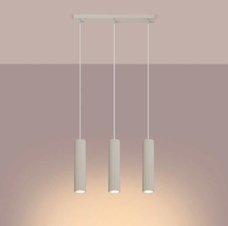Beżowa, trzy-punktowa lampa wisząca Karbon nad wyspę