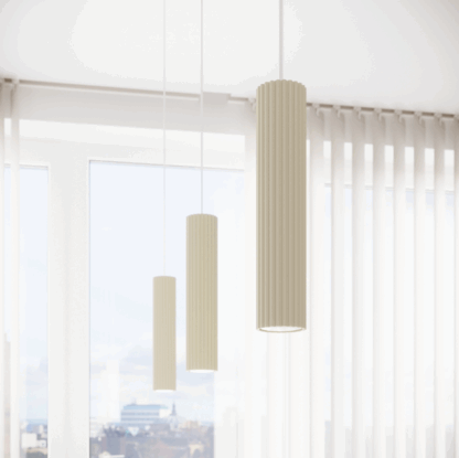 Wisząca lampa Karbon w beżowym kolorze w kształcie tuby