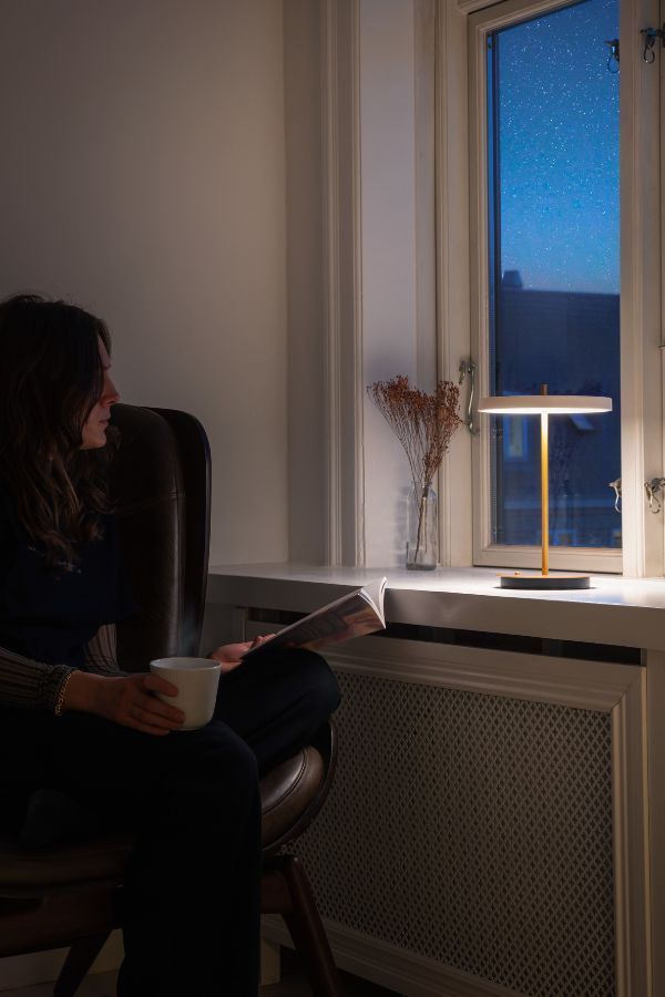 Bezprzewodowa lampa stołowa Asteria Move w kolorze perłowej bieli