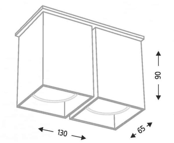 Biała kwadratowa lampa sufitowa Toda z podwójnym źródłem światła