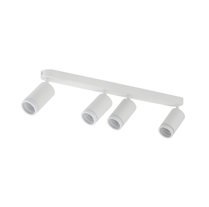 Biała lampa sufitowa Jet z regulowanymi tubami i czterema punktami świetlnymi