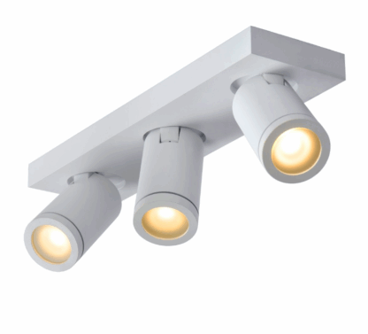 Biała łazienkowa lampa sufitowa Taylor z trzema regulowanymi tubami i klasą szczelności IP44