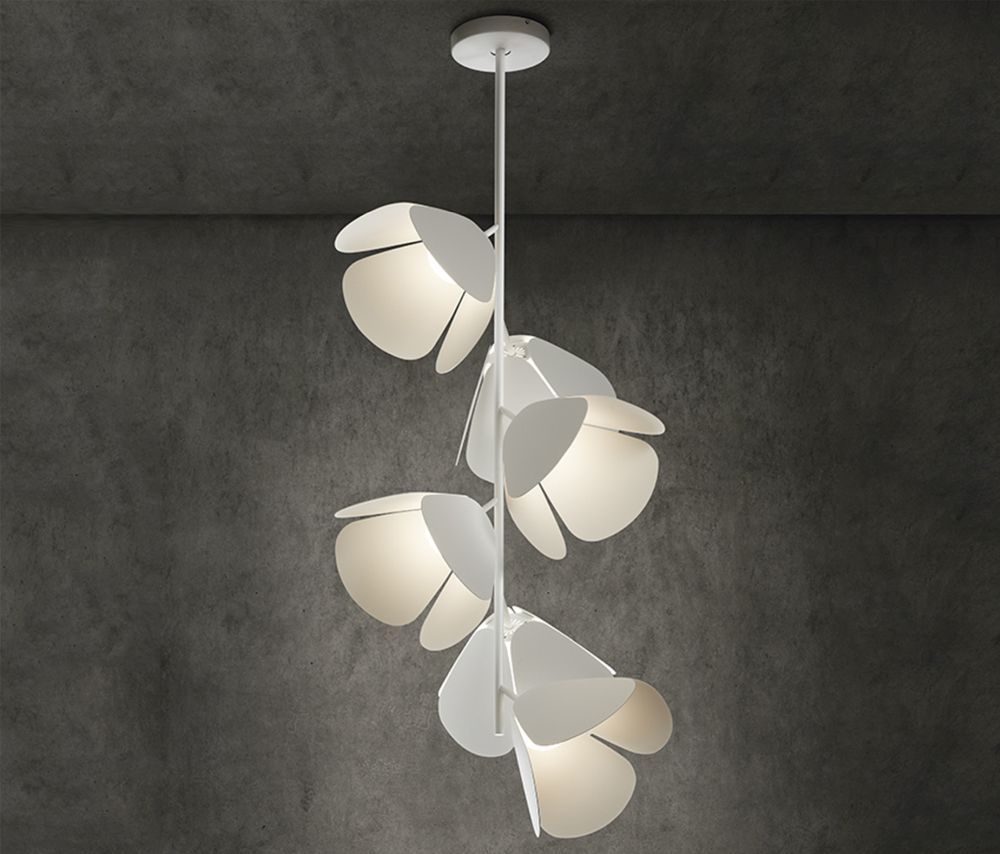 Przejdź do sklepuBiała sufitowa lampa Mod PF/73/6L z kloszami przypominającymi kwiaty
