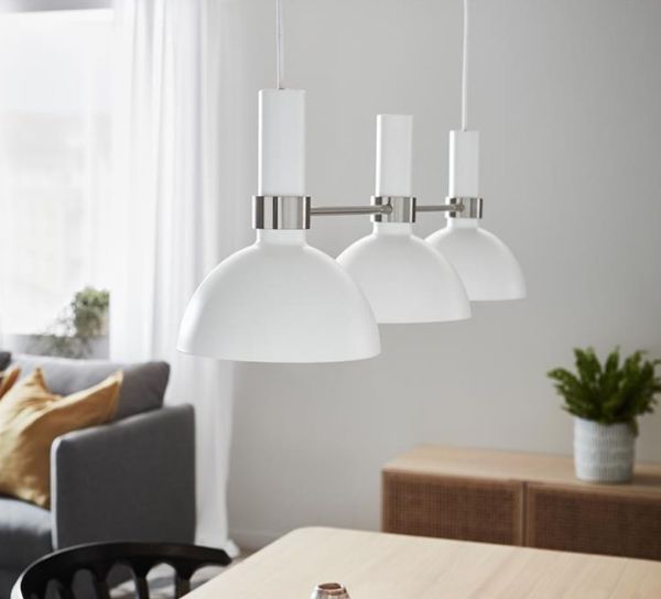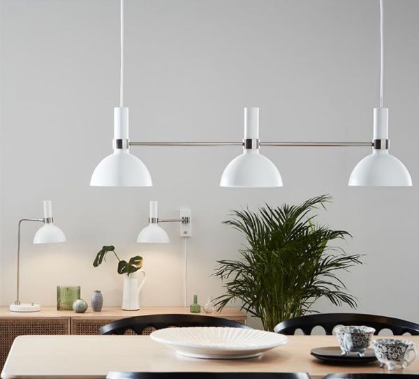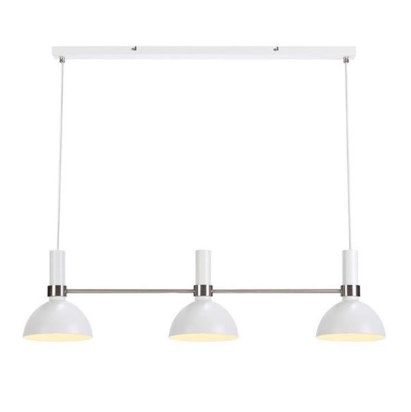 Biała wisząca lampa Larry z trzema kloszami na listwie