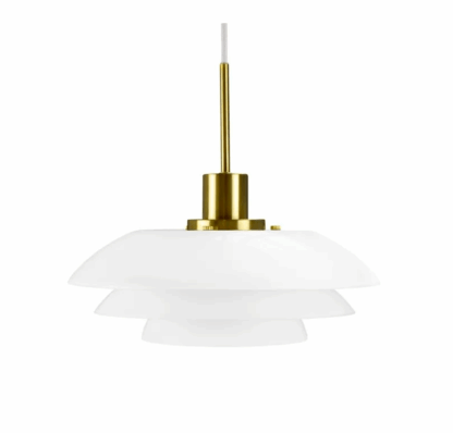 Przejdź do sklepuBiała wisząca lampa Morph 31 z eleganckimi złotymi detalami idealna nad stół
