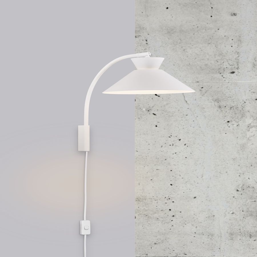 Charakterystyczny dla kolekcji Dial jest klosz w kształcie stożka - z otworem w górnej części - dzięki temu uzyskujemy efekt delikatnego podświetlenia nad lampą. Kinkiet dostępny w kolorze: białym, czarnym, szarym i żółtym.