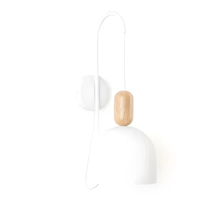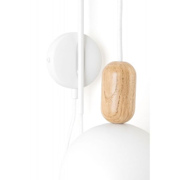 Biały kinkiet Loft Ovoi z drewnianym akcentem