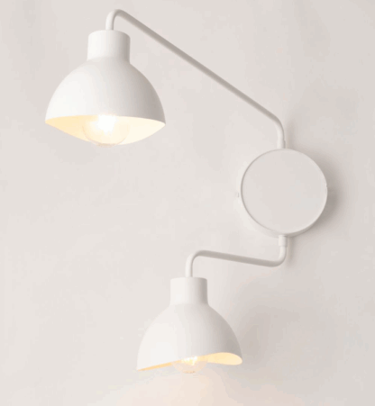Biały kinkiet podwójny Etherea 2 z regulowanymi wysięgnikami do salonu