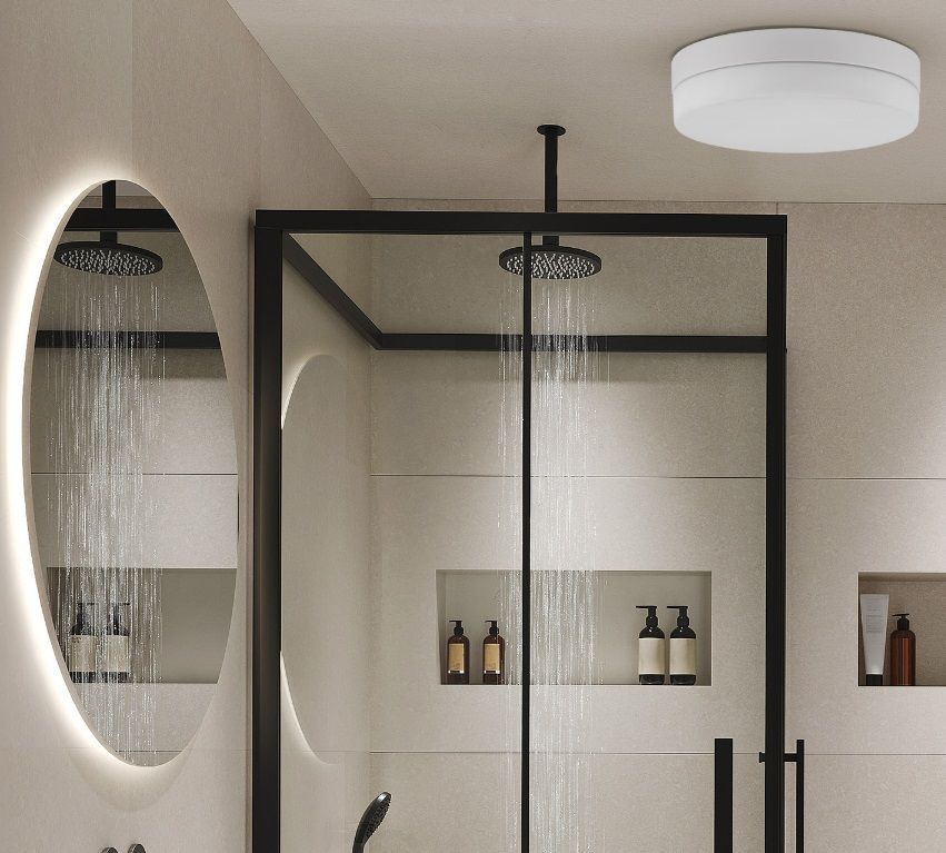 Biały sufitowy plafon łazienkowy Pori o średnicy 29 cm i klasie szczelności IP44
