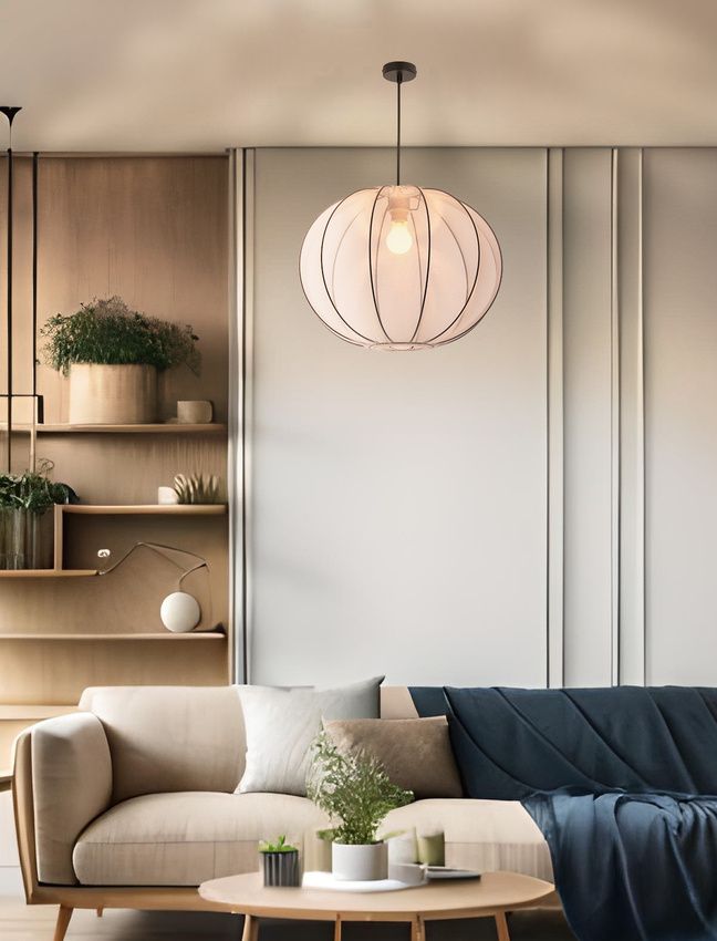 Biały żyrandol Mellow 52 z ażurowym abażurem.