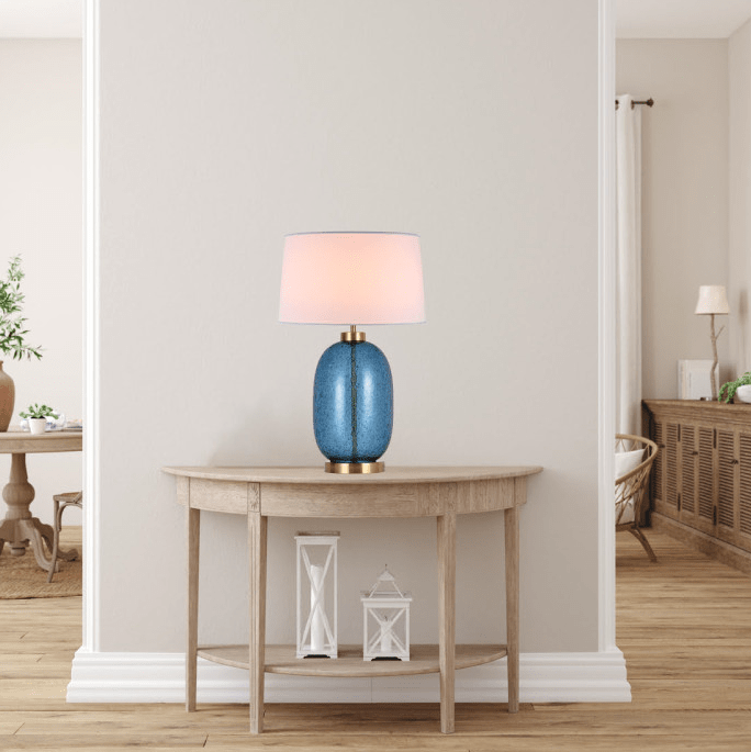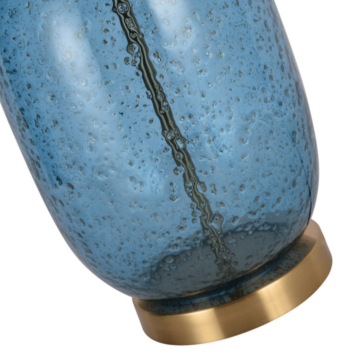 Błękitna lampa stołowa Amur z eleganckimi złotymi zdobieniami