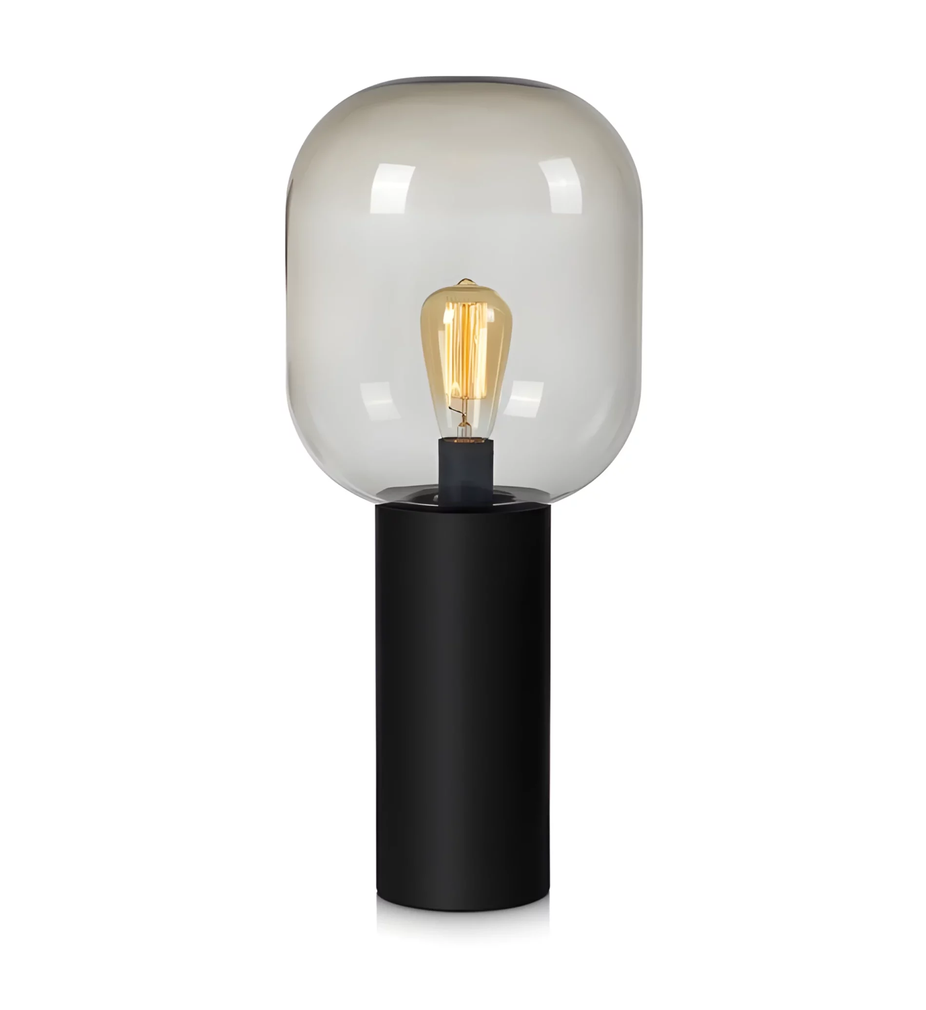 Czarna lampa stołowa Brooklyn z wysoką podstawą i szarym kloszem