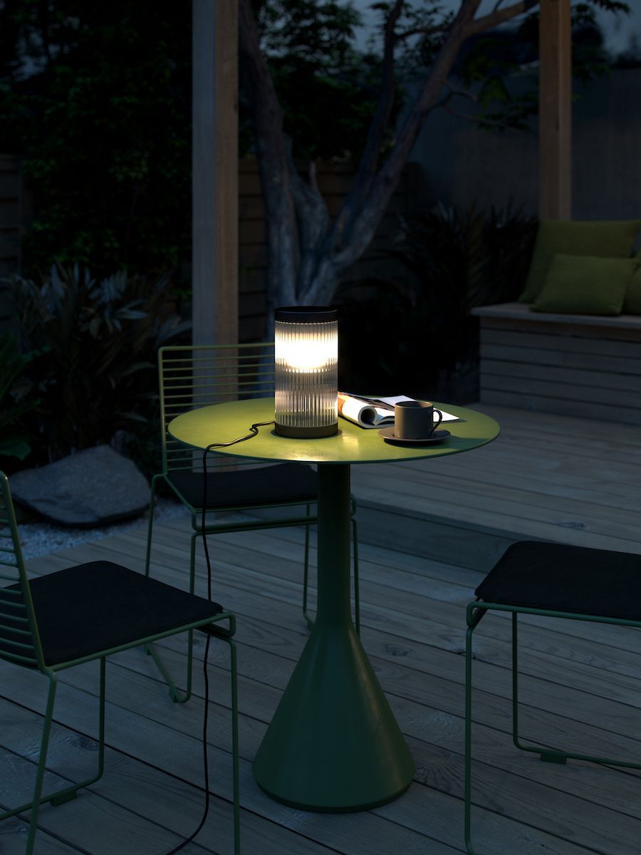 Czarna lampa stołowa Coupar z ryflowanym kloszem i klasą szczelności IP54