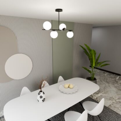 - 4 eleganckie klosze w kształcie kul - rozproszone światło bez cieni idealnie oświetli cały stół lub blat kuchenny