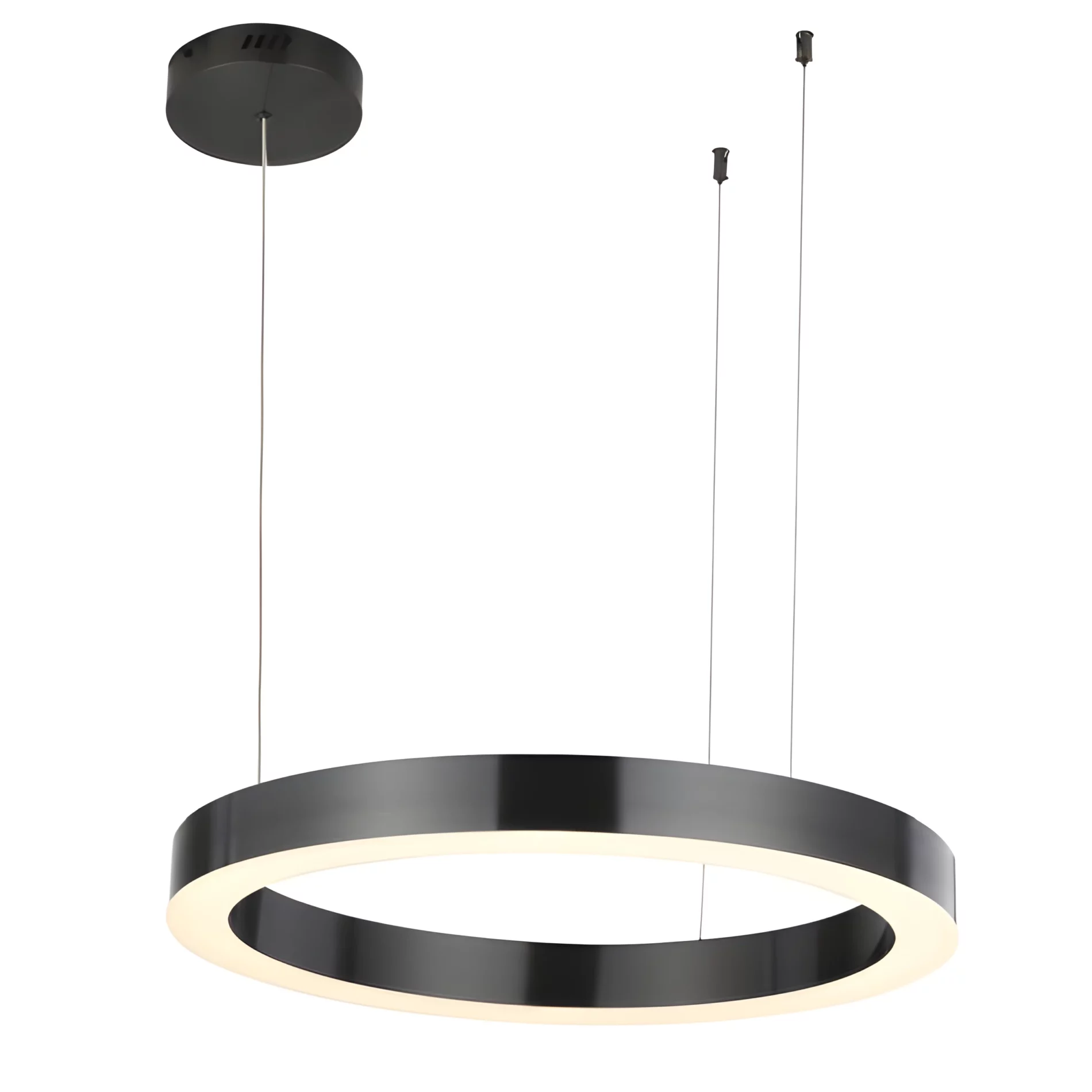 Czarna, ledowa lampa wisząca do nowoczesnych wnętrz.
