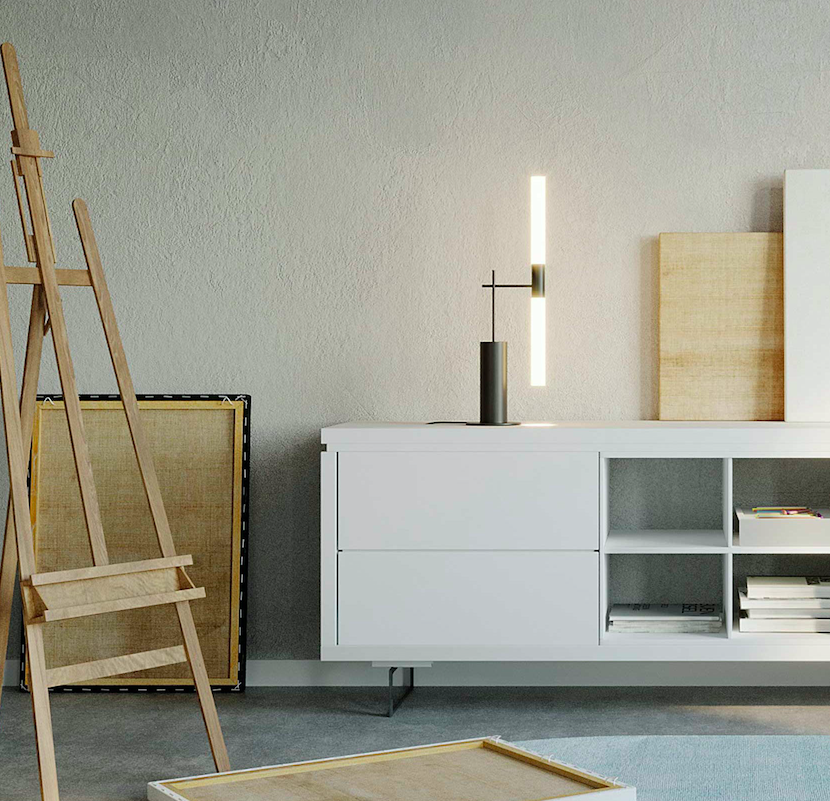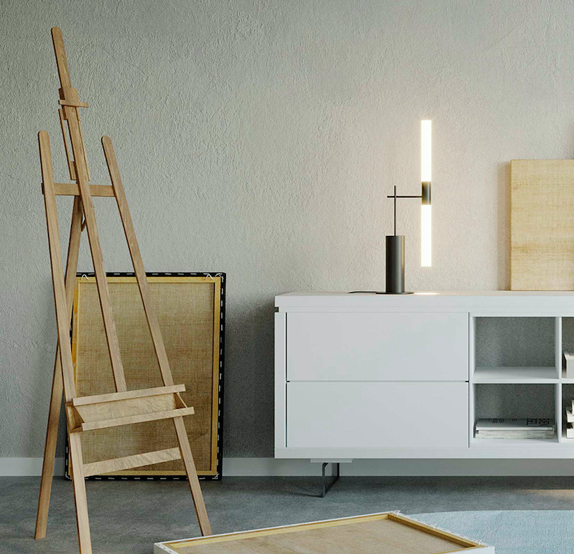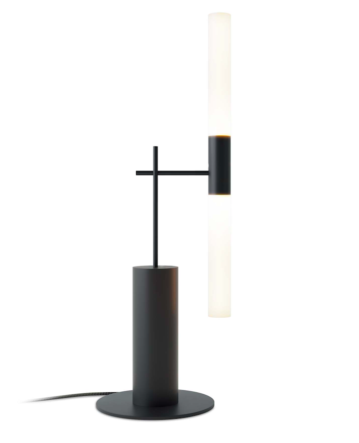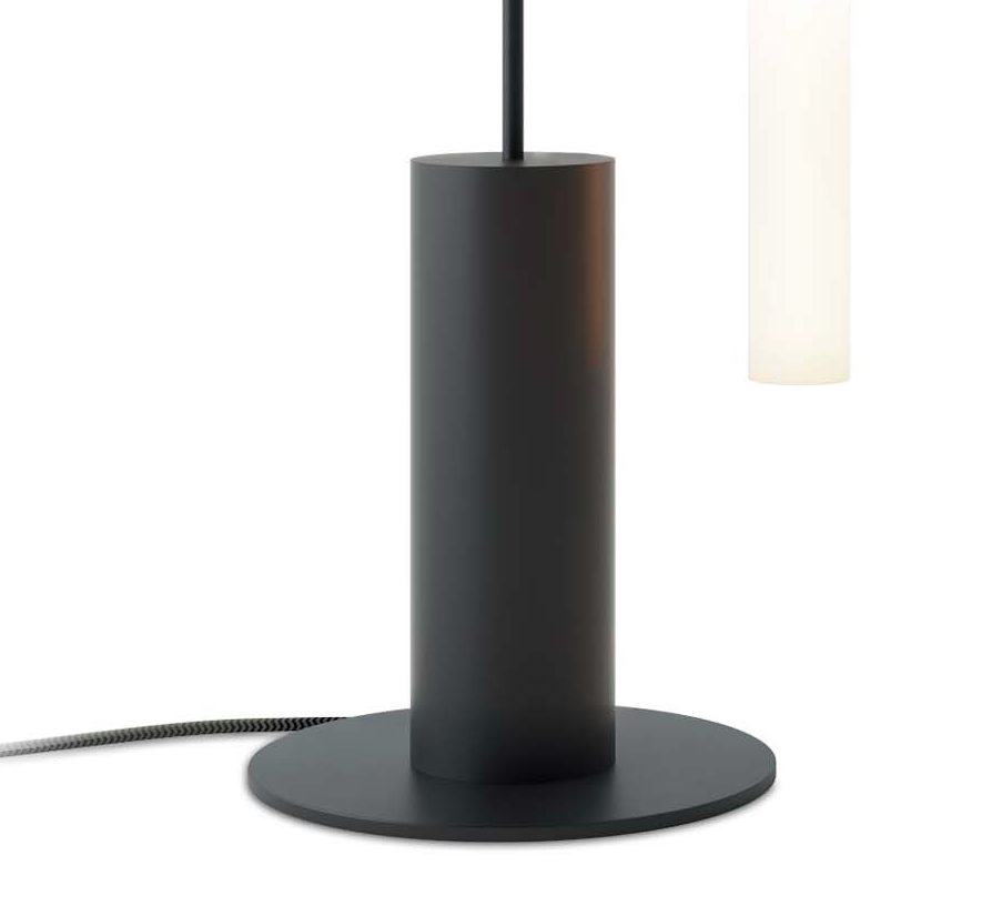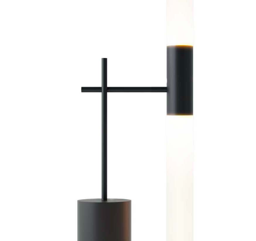 Czarna lampka stołowa Roos z pionowym, tubowym kloszem LED