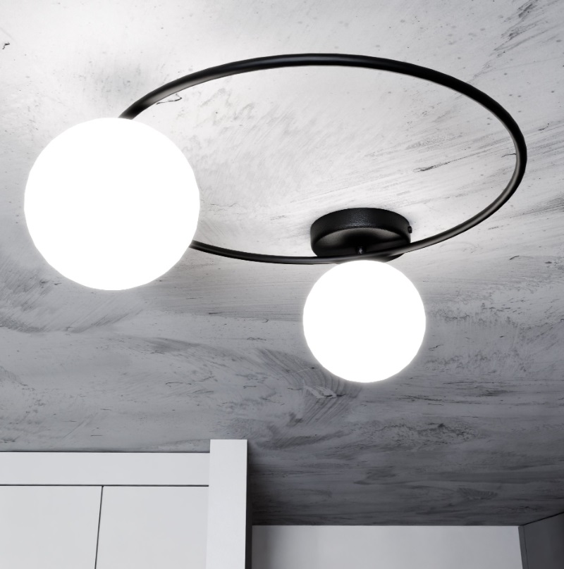 Czarna plafoniera Sopra 2 z dwiema białymi kulami E14 IP20