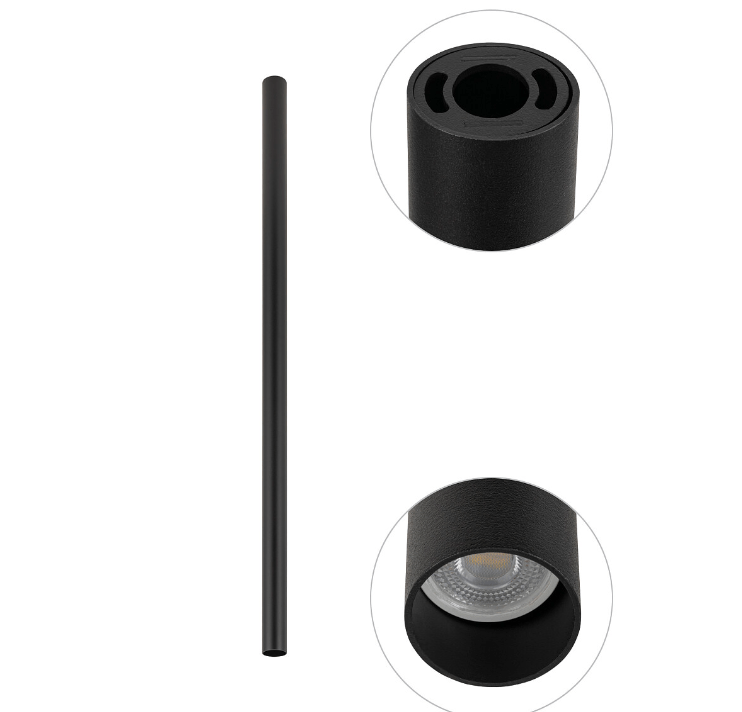 Czarna, smukła tuba sufitowa Fourty L o długości 90 cm