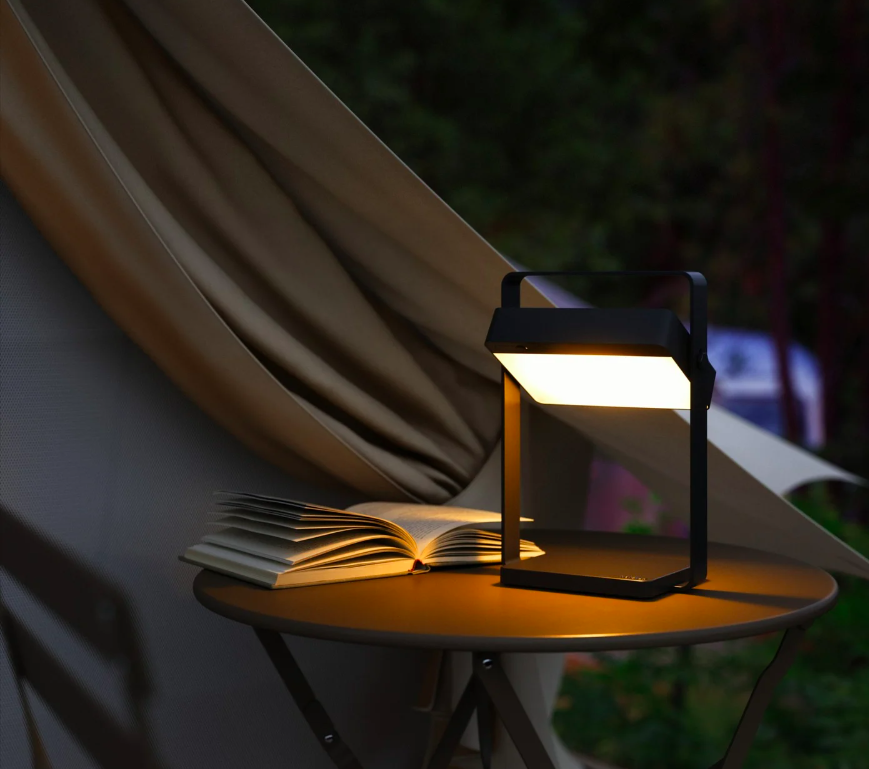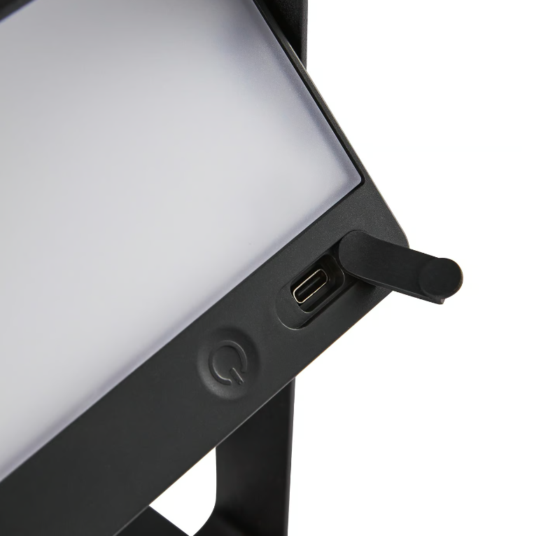 Czarna solarna lampka balkonowa Saulio LED z ładowarką USB i klasą szczelności IP44