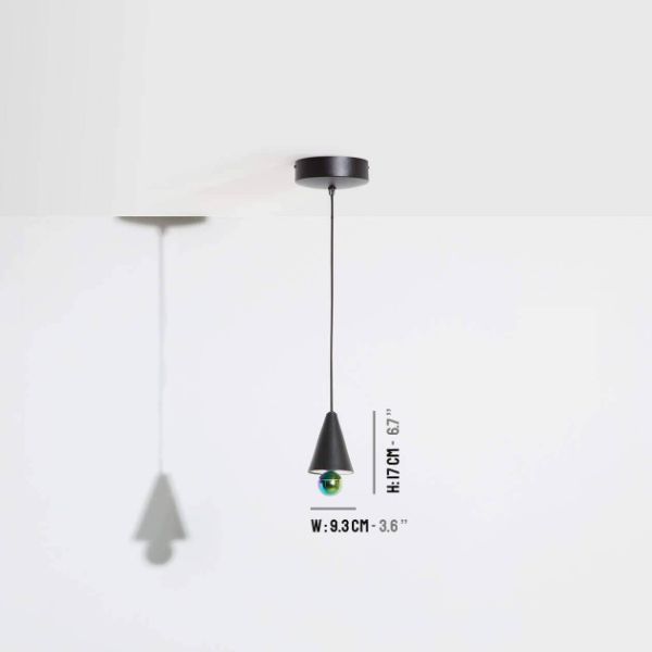 Czarna stożkowa lampa wisząca Cherry XS z metaliczną kulką