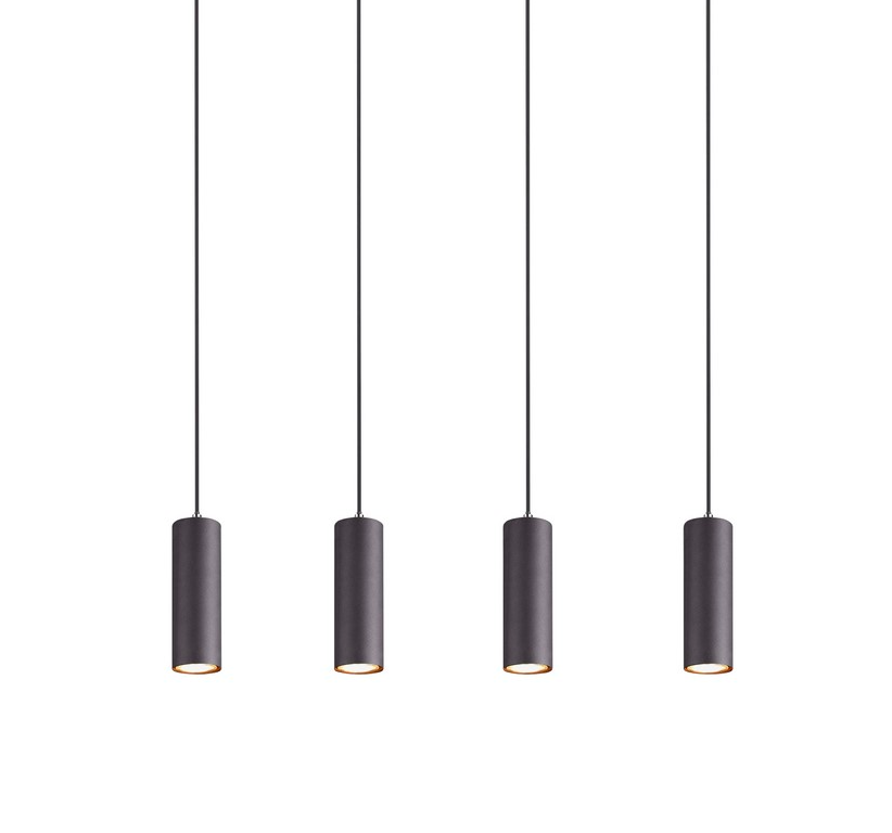 Czarna wisząca lampa Marley z czterema cylindrycznymi kloszami