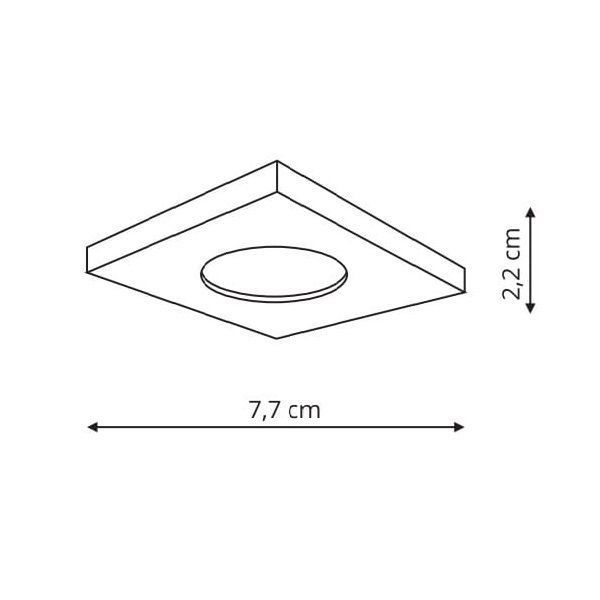 Oczko sufitowe Lagos wykonane jest z metalu w czarnym wykończeniu. Kwadratowa płytka o wymiarach 7,7 cm × 7,7 cm z okrągłym otworem na żarówkę kieruje światło w dół, dobrze doświetlając posadzkę, brodzik lub blat w strefie mokrej. Kluczowe wymiary (wys. 2,2 cm × szer. 7,7 cm × dł. 7,7 cm) ułatwiają rozmieszczenie kilku oczek w suficie podwieszanym lub podbitce. GU10 (maks. 50 W) pozwala dobrać odpowiednią żarówkę LED do pomieszczenia oraz IP65 — na zewnątrz (pył/wilgoć) i do wilgotnych pomieszczeń.