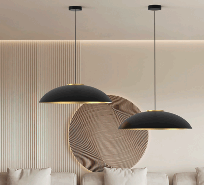 Czarno-złota wisząca lampa Rebeca 56 z płaskim kloszem