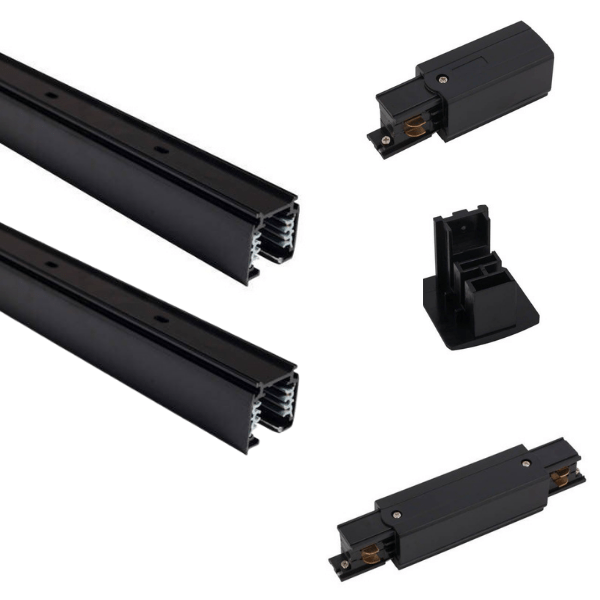 Czarny, 3-metrowy system szynowy CTLS, 3-fazowy, zasilany końcowo