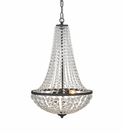 Duży żyrandol w stylu vintage Island o średnicy 50 cm z kryształowymi łańcuszkami i wiszącymi elementami