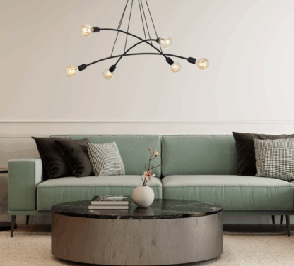 Przejdź do sklepuCzarny industrialny żyrandol Helix 6 – idealny do wnętrz w stylu loftowym