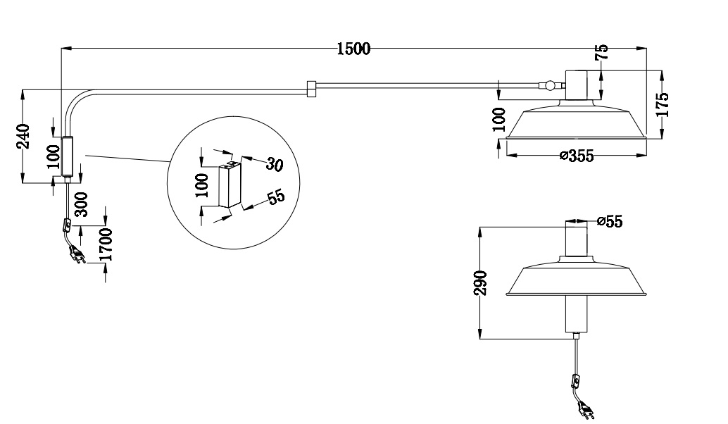 Ramię do lampy ściennej Willow Mini – czarne, regulowane