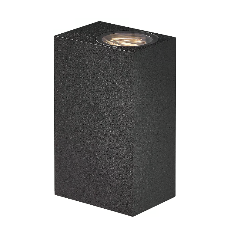 Czarny kinkiet elewacyjny Asbol Kubi z aluminium, wyposażony w oświetlenie LED i klasę szczelności IP44