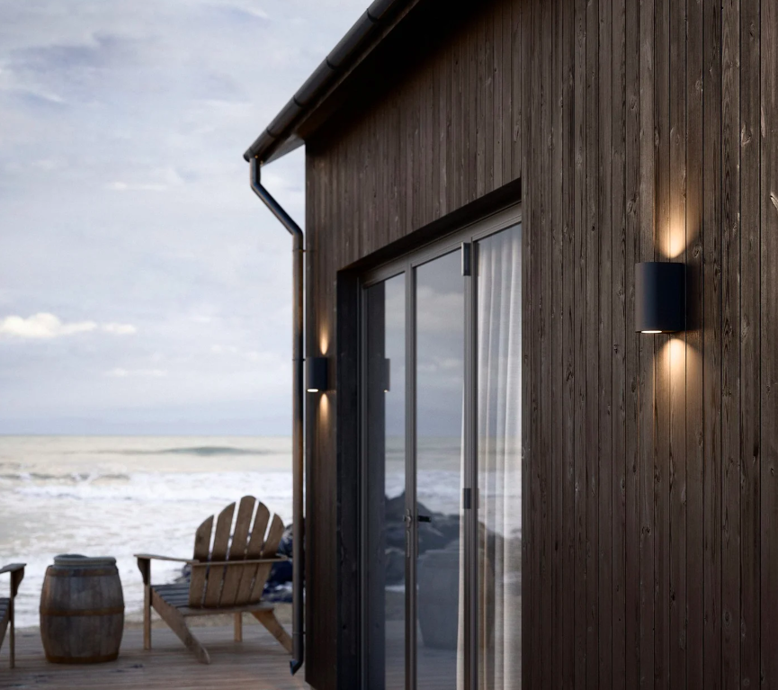 Czarny kinkiet elewacyjny Canto Maxi 2 z aluminium i szkła, odporny na warunki atmosferyczne dzięki klasie ochrony IP44