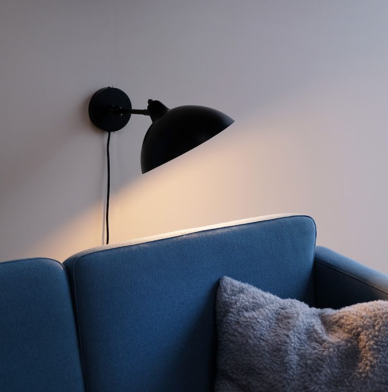 Czarny kinkiet Futura – kompaktowy model na ramieniu, idealny nad sofę