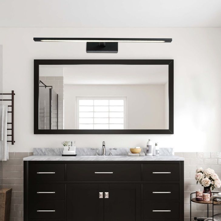 Czarny kinkiet Isla LED CCT, IP44, idealny nad okrągłe lustro