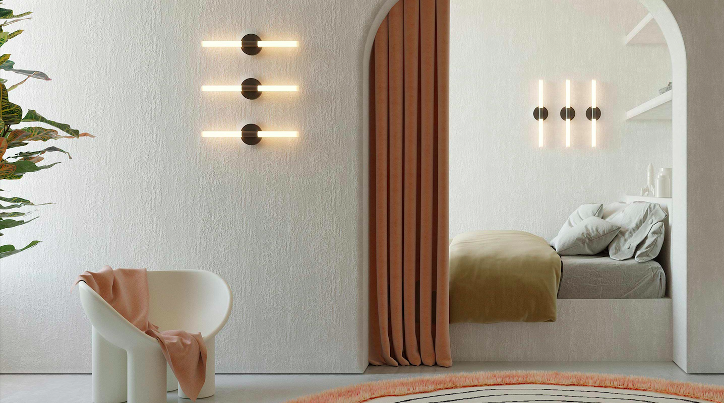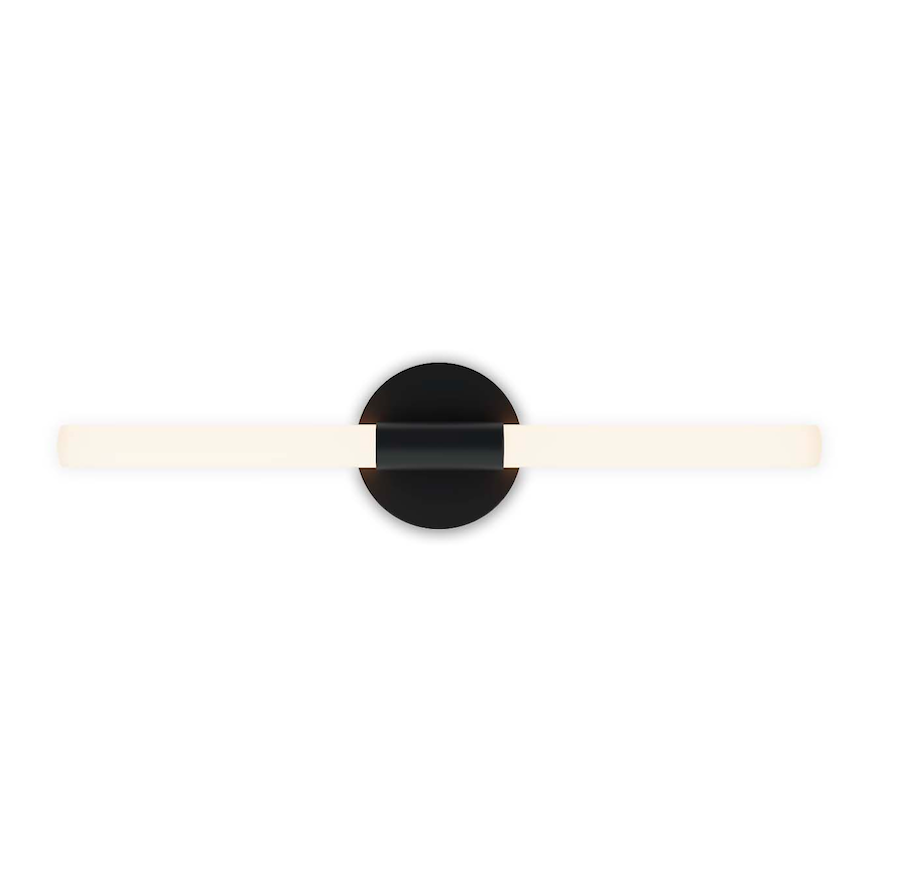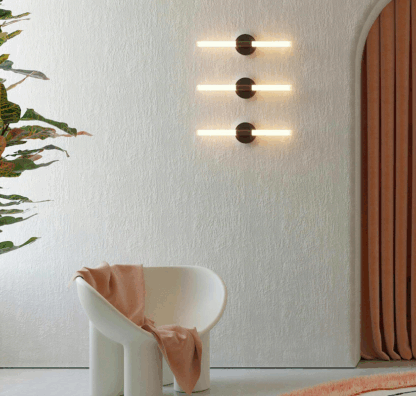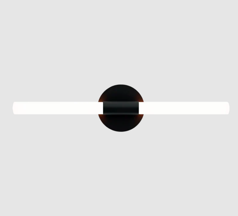 Czarny kinkiet liniowy Roos LED z akrylowymi tubami w ciepłej barwie 3000K