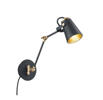 Czarny kinkiet na wysięgniku Edward z eleganckimi złotymi zdobieniami