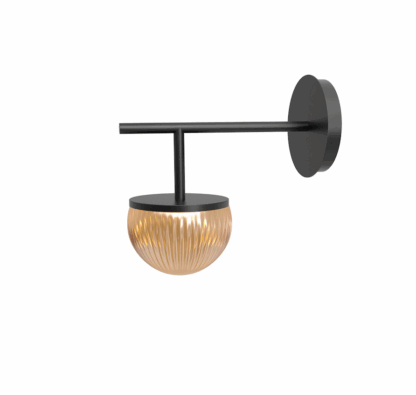 Hiszpański kinkiet Roi w formie czarnego dysku z bursztynowym kloszem