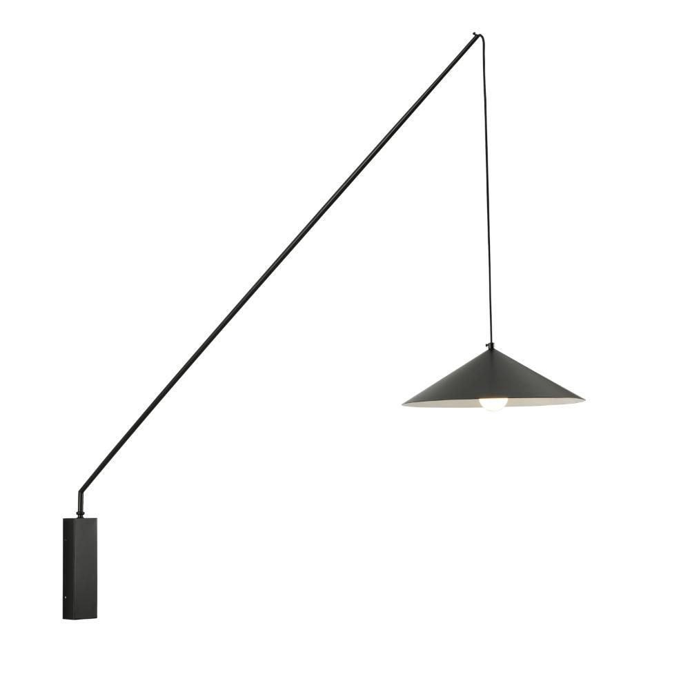 Czarny kinkiet Swing z długim ramieniem idealny nad sofę