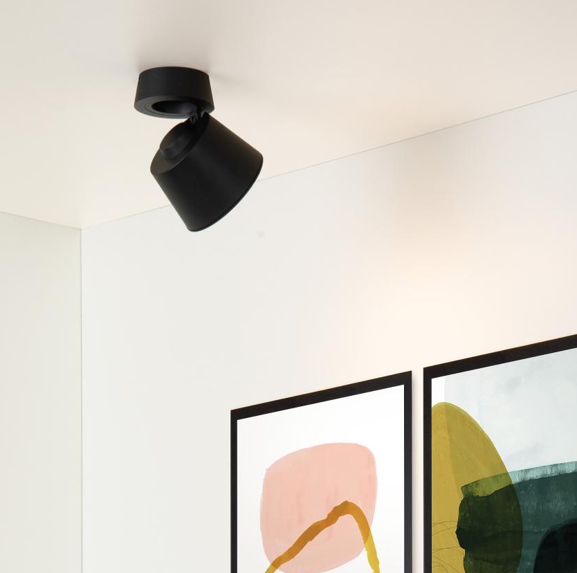 Czarny nowoczesny reflektor sufitowy Trigono z regulacją kierunku światła