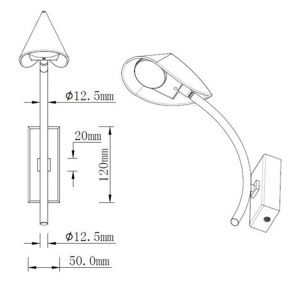 Ramię do lampy ściennej Willow Mini – czarne, regulowane
