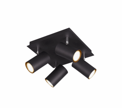 Czarny sufitowy plafon Marley z 4-punktowymi reflektorami