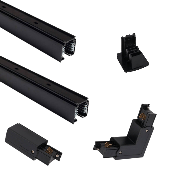 Czarny system szynowy CTLS „L” o długości 2+2 m, 3-fazowy, zasilany końcowo
