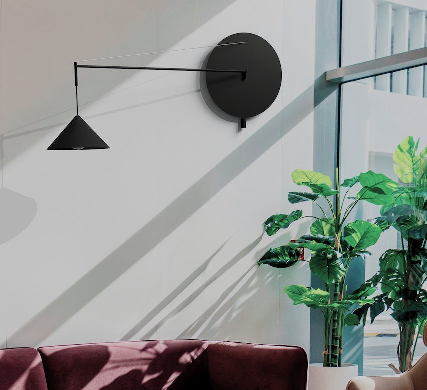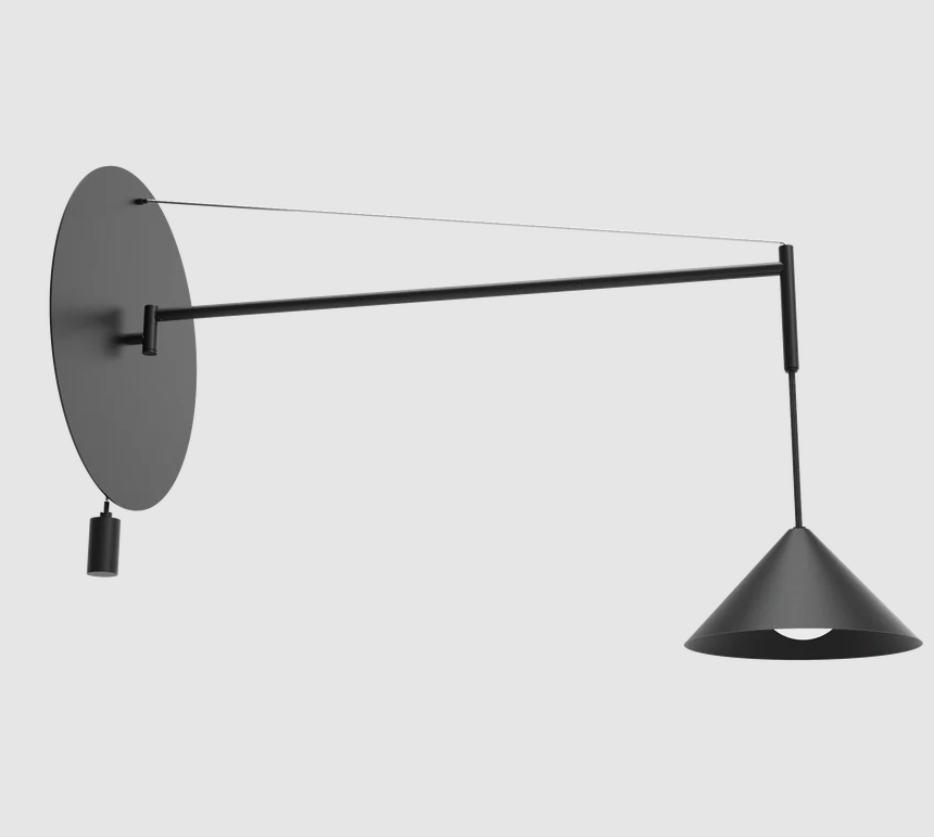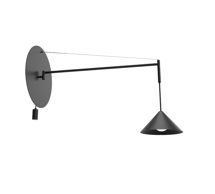 Czarny wiszący kinkiet na ramieniu Roma 60 w kształcie stożka