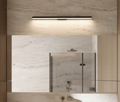 Przejdź do sklepuCzarny, wydłużony kinkiet Aqua LED CCT IP44 o długości 66 cm