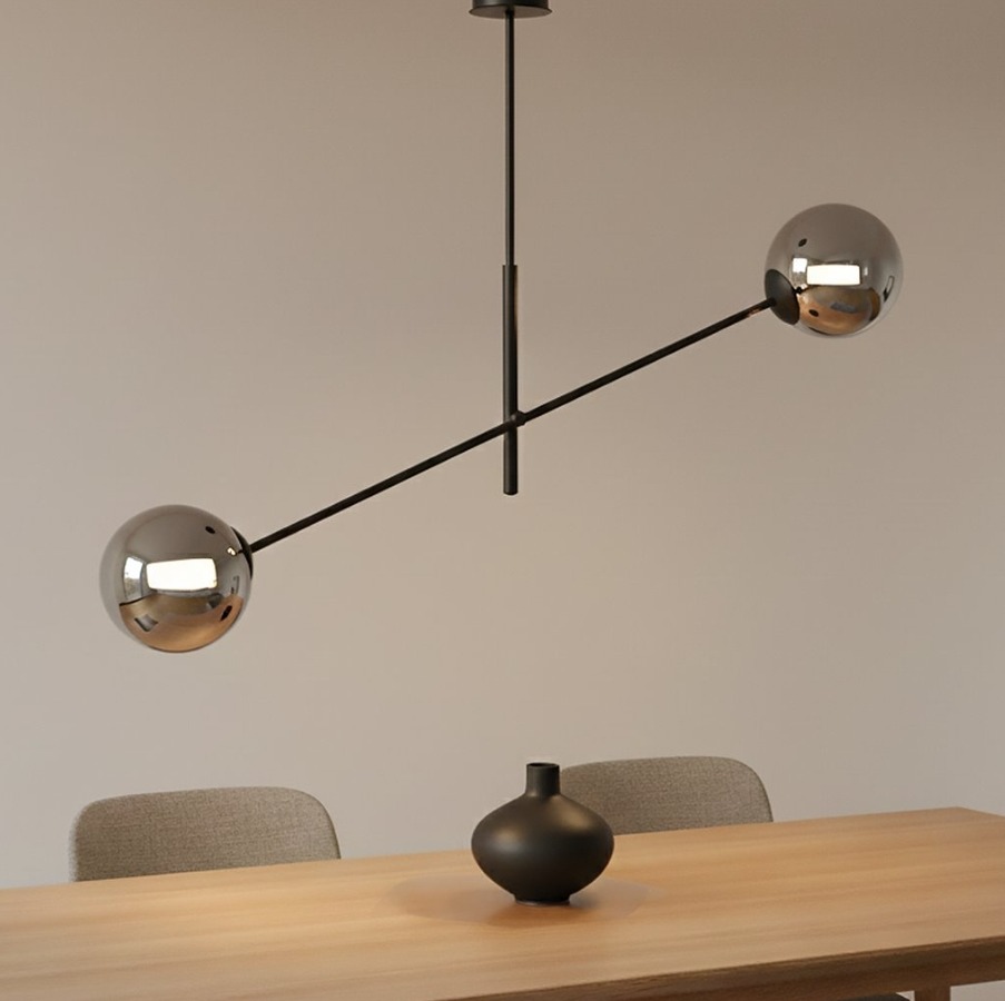 Żyrandol Linear 2 z grafitowymi kulami nad stół jadalniany