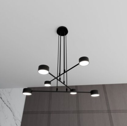 Czarny żyrandol Modus 6 z sześcioma punktami światła GX53