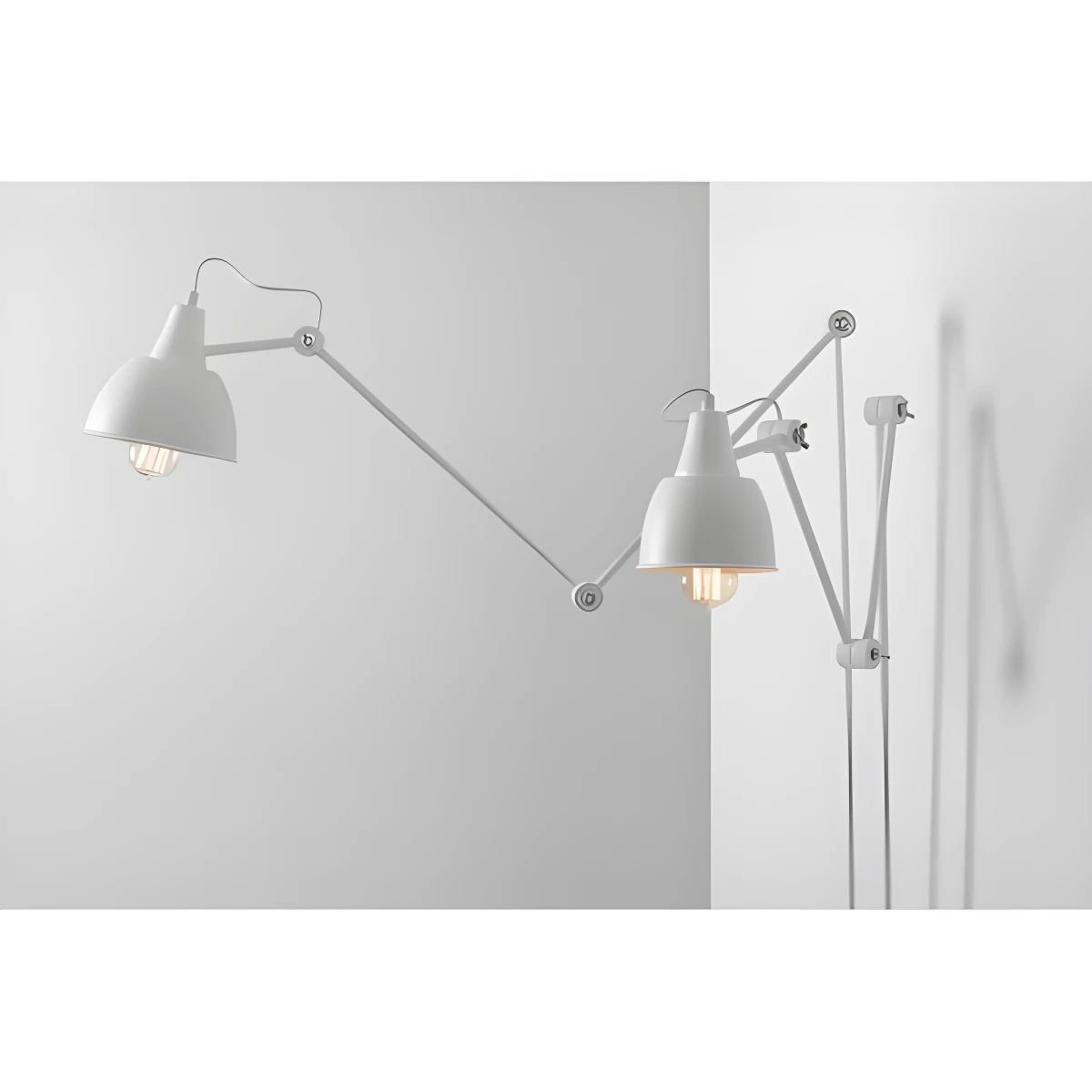 Designerska lampa ścienna Aida - dwa regulowane ramiona, białe klosze