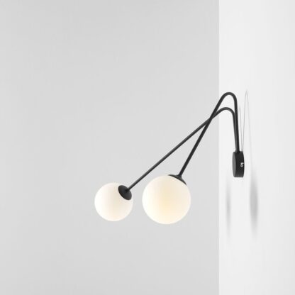 Czarny kinkiet Holm z dwoma mlecznymi kloszami